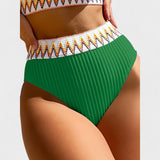 Este biquíni de duas peças em tecido canelado traz o equilíbrio perfeito entre sofisticação e autenticidade. O branco clássico é realçado por um bordado étnico em ziguezague nos acabamentos, criando um contraste vibrante e cheio de personalidade. O top tipo cropped com alças finas e a cueca de cintura subida oferecem suporte, conforto e um toque retro-chique, ideal para quem quer destacar-se com discrição elegante nas suas escapadelas de verão.
